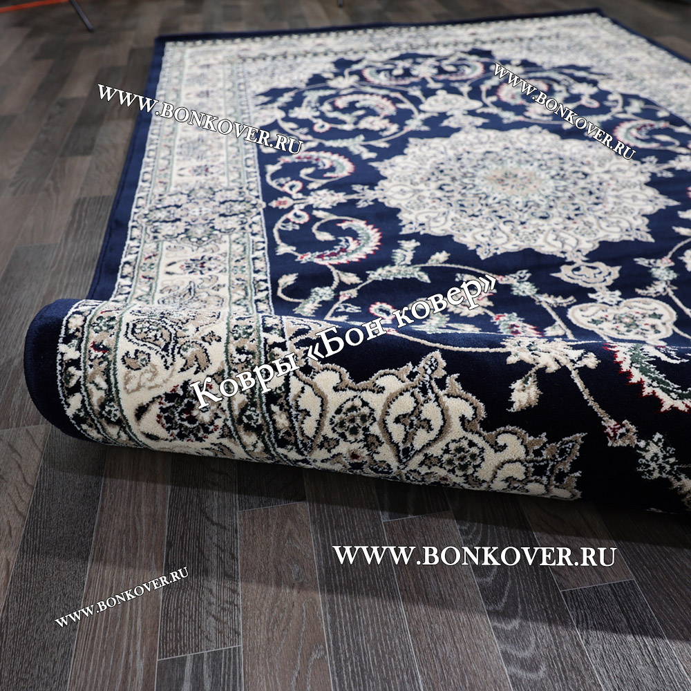 Шикарный Ковер Для Гостиной Дизайн 30837 Темно-Синий наполняет интерьер жилого пространства теплом и уютом, гармонично сочетает в себе изящество и красоту. Он изготовлен из экологически чистого сырья, комфортный и долговечный.
